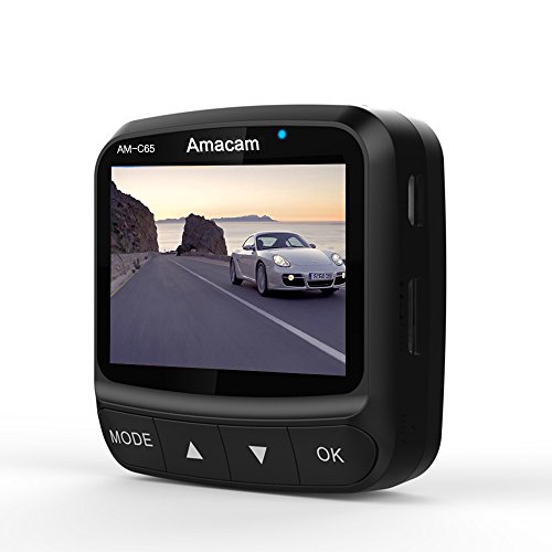 Dash Cam Amacam AM-C65 Compact Car Camera. Excellent Night Vision Super Full HD1080P Built-in Wi-Fi For Camera to Phone Live Video. GPS Tracking & Google Maps 140 Degree Wide Angle Lens