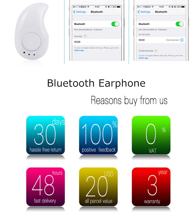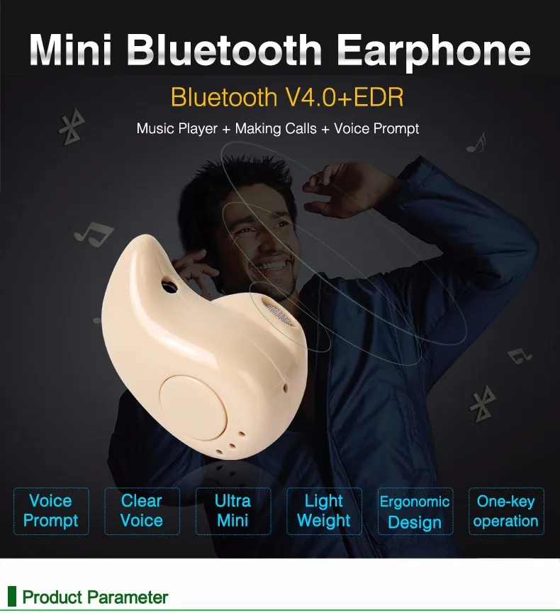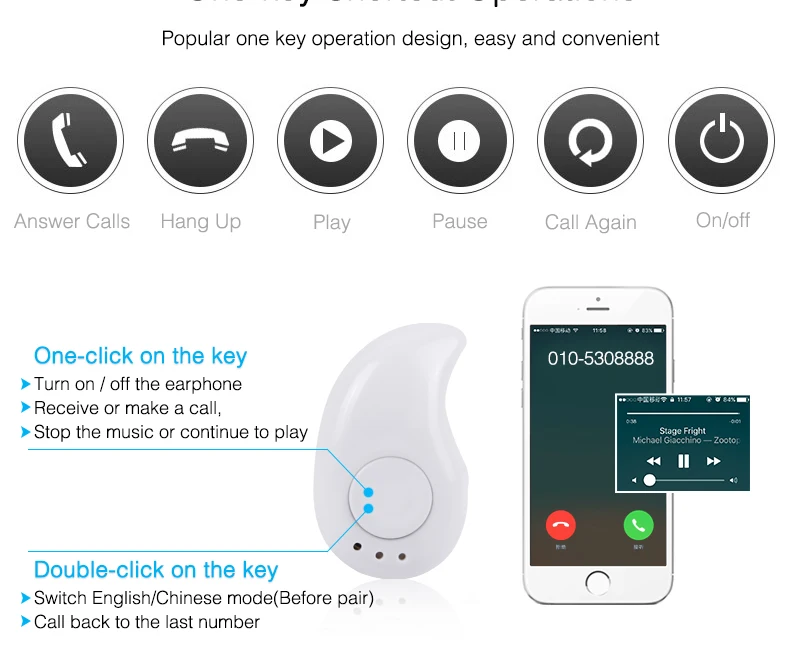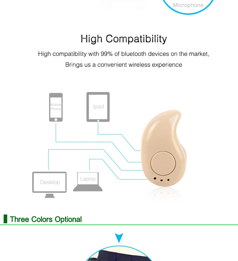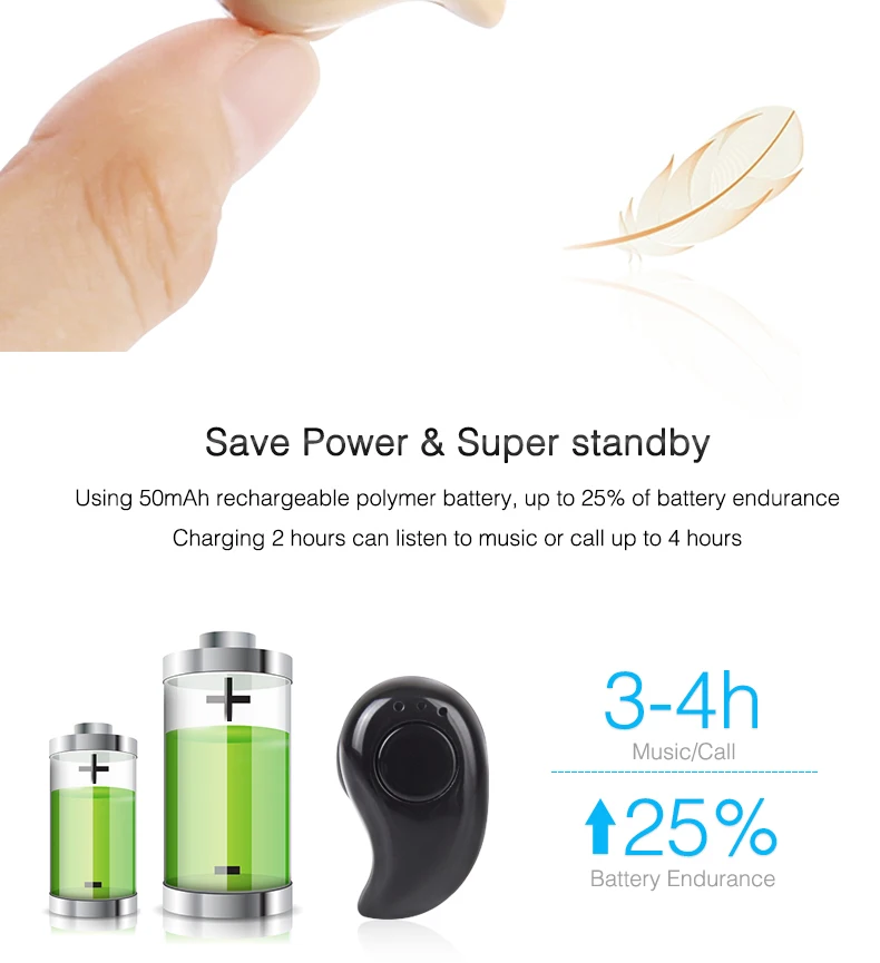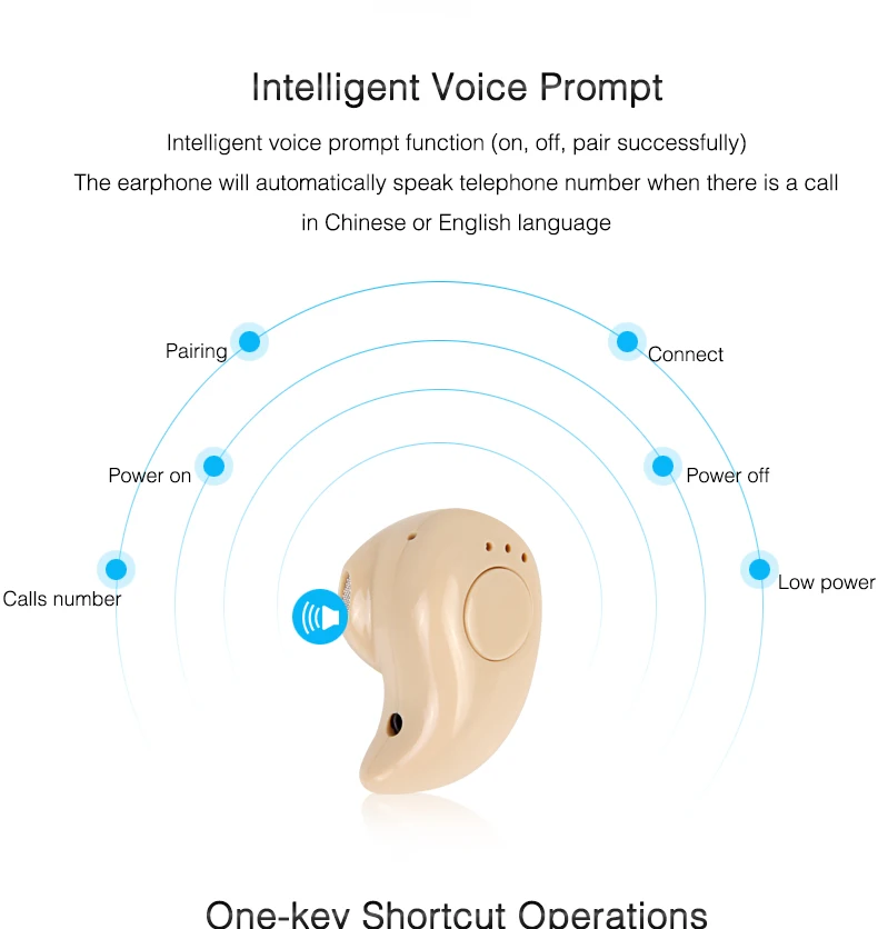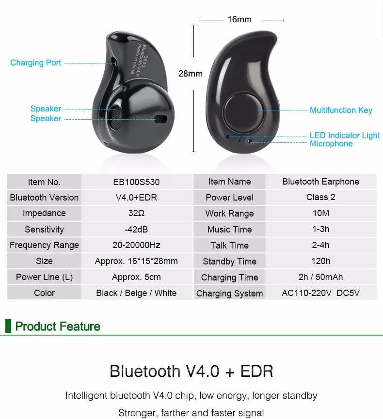 1. Bluetooth V4.0 Ear Hook earphone, mini and portable, comfortable to wear.