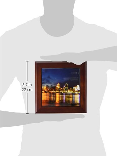 3dRose ft_61681_1 Cincinnati Skyline at Night Framed Tile, 8 by 8-Inch