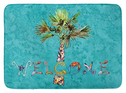 Caroline's Treasures 8711RUG "Welcome Palm Tree on Teal" Floor Mat, 19" x 27", Multicolor