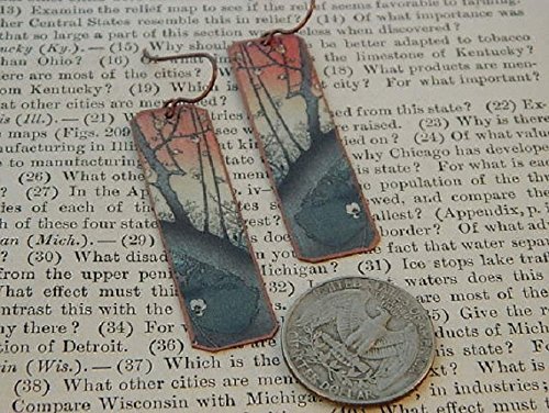 -. Title : Art earrings Utagawa Hiroshige Plum Trees Japanese art mixed media jewelry