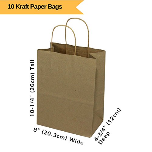 - 10 Kraft Bags with Raffia Handles - Medium Size 8" x 4 3/4" x 10 1/4“