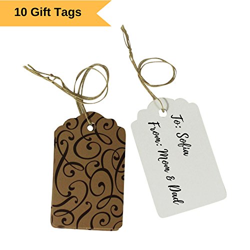 - 10 Large (3¼” L x 2” W) Gift Tags on a String - Front has Cocoa Swirl Pattern, Back Side is White. Printed on Matte Card Stock, Attach Easily to Gift Bag