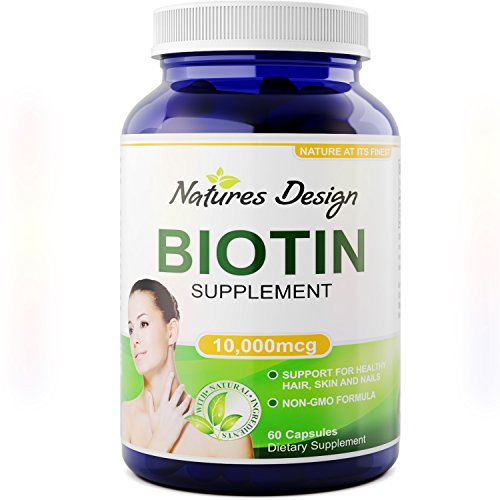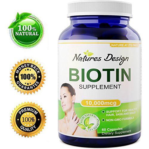 -. Feature : Vitamins for your hair - Biotin is a B Vitamin that is essential for hair growth. If you have thinning hair, then you may be lacking this nutrient. Take our Biotin supplement to fill the gaps in your diet! / Strengthens hair strands - Breakage is one of the biggest contributors to hair loss. Tired of finding loose strands in your brush? Taking Biotin can improve your hair's durability, while also maintaining its natural gloss and color. / Improves digestion - One of the functions of Biotin is aiding proper digestion, as it is vital in breaking down fats and carbohydrates. By making your digestive system more efficient, Biotin may also promote natural weight loss. / Helps skin and nails - Biotin has many benefits for the skin and nails as well. It can strengthen brittle toenails and fingernails, making them less likely to break or chip. It also aids in maintaining a healthy complexion. / Made in the U.S. - All Natures Design products are made by GMP certified laboratories in the United States. We use the finest natural ingredients, ensuring maximum potency. You can count on us to deliver a high quality product.