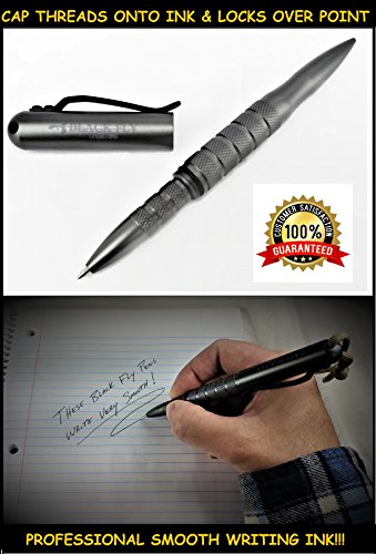 Black Fly Tactical Pen Self Defense Weapon NEW BEST Swat Police Gear Military Every Day Carry Protection Tool, EDC Pocket Pen + 2nd Ink Refill, Solid Alloy Glass Breaker, Gray or Black 100% Guarantee