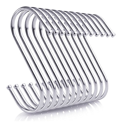 S Shaped Hooks 20 Packs - Heavy Duty Stainless Steel Kitchen Hangers for Hanging Pans Pots Bags Towels Plants (Medium Size)