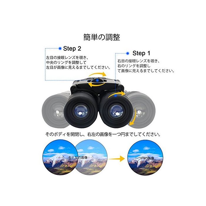 【한쪽 손으로도 punt를 조정】이 접는 쌍안경은 자신의 눈(째)폭에 의해조정에 옵니다.중앙 포커스에,단지 손바닥의 크기 때문에,한쪽 손으로 쥐어 punt의 합해가 느낌 가볍고 옵니다.오른쪽의 접안 부분으로 포커스도 있고, 양쪽 눈의 클리어이다가 미조정에 옵니다.아웃도어,여행,콘서트나 돔의 라이브 관상,등산 등의 아웃도어 스포츠 시에도 편리하게 소유 운반합니다.
