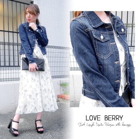ショート丈のレディースデニムブルゾンです☆