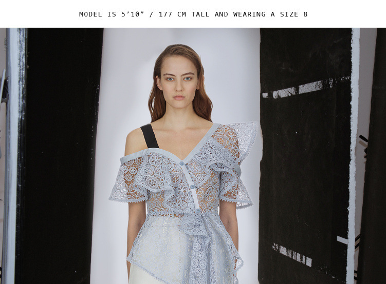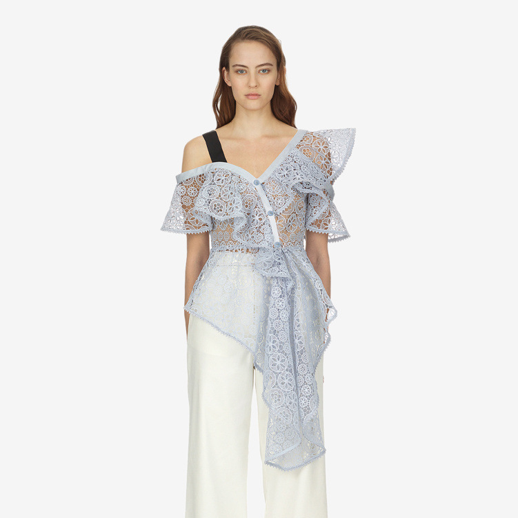 Lace sloping shoulder ruffled irregular top