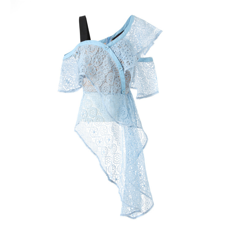 レーススロープショルダーフリル不規則なトップ
