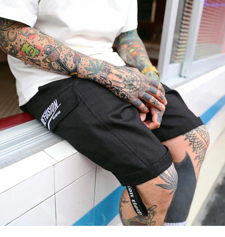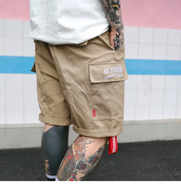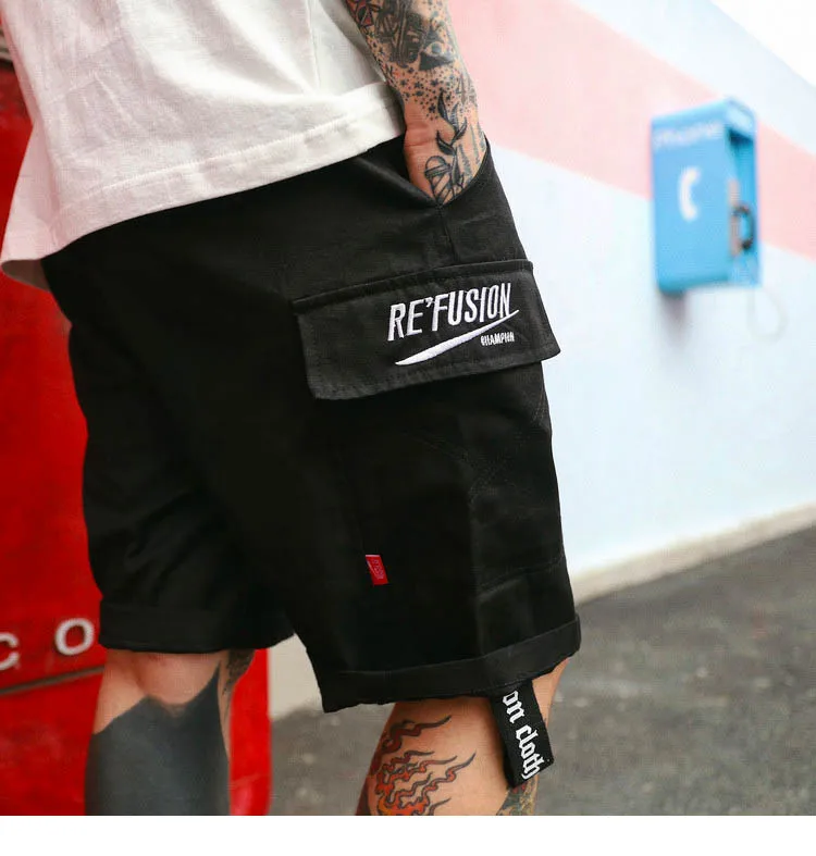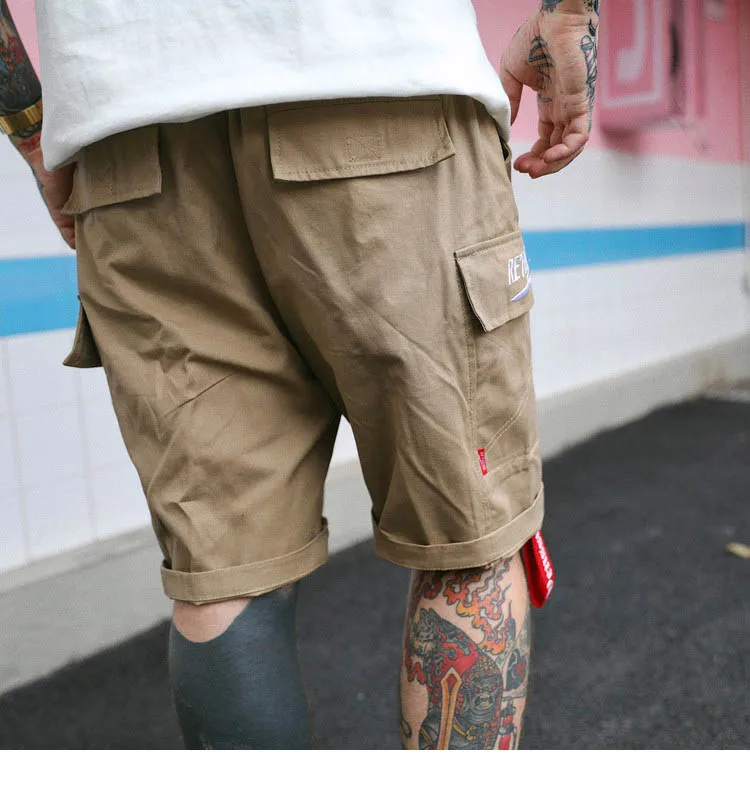 Item:Hip Hop Cargo Short Pocket Mens Casual Short Side Ribbon