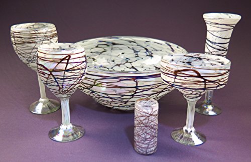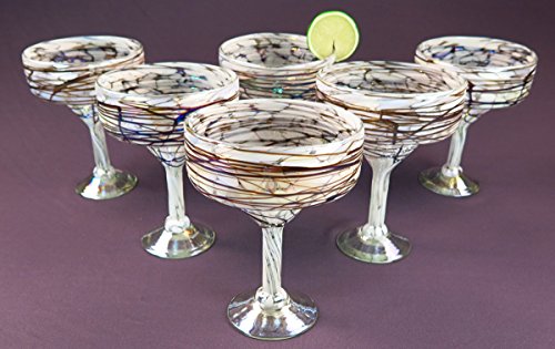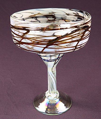 Studio : Eye4Art Publisher : Eye4Art Product Description Every day is a fiesta whether serving margaritas or ice cream (makes a great desert dish). These six glasses are crafted in Mexico from lead free recycled glass. Decorated with iridescent Chocolate swirls on a background of pure white color. Because they are handmade dimensions and chocolate colors may vary slightly. Sturdy enough for everyday use. Mouth-blown lead-free glass. Size: approximately 7 inches High 5 inches Wide and holds about 14 oz. Care instructions: Our Mexican Glassware is individually mouth blown, hand formed and made from recycled glass. Trapped bubbles and slight variations in form, capacity and color are natural and charming features of the glassware. Although it is quite durable, this glass is not tempered so some extra care is necessary. A cooling-off period is essential after the glassware is removed from the dishwasher. Extreme temperature changes may cause thermal shock and cracking. This glassware is not suitable for serving hot beverages. 0