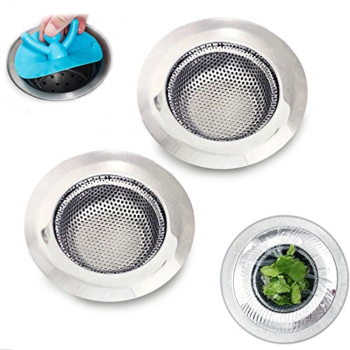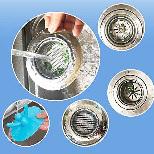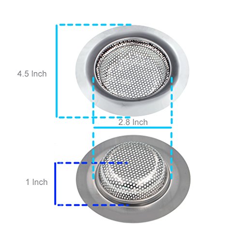 - GOOD SIZE: our sink strainers are perfect for the sink to catch the unwanted stuff going down the drain.Holes are large enough for water to drain and small enough to catch any food remnants and easy to empty.