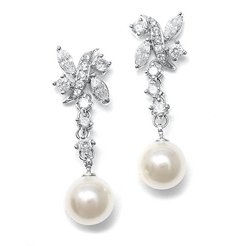 -. Feature : Best-Selling Luxury Ivory Pearl and CZ Dangle Earrings for Brides or Special Occasion; 1 1/2" h with 10mm Round Pearl Drops / Genuine Silver Platinum Plating with the Look of Fine Jewelry; Post Earrings with Comfort Disk Backs / Finest Quality AAAAA Grade Cubic Zirconia for Diamond-like Brilliance / Risk-Free Purchase; 100% Money-Back if Not Delighted; Lifetime Guarantee / Beautifully Packaged in Luxurious Silver-Embossed Mariell Signature Gift Box Ideal for Bridal, Wedding, Bridesmaids, Mother of the Bride, Pageants, Debutantes, Holidays, Special Occasions, Christmas, Birthday, Valentine's Day, Mother's Day or Anniversary Gifts