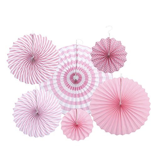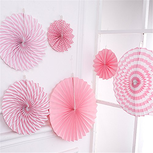 Zilue Bright Colorful Hanging Paper Fans Set Round Pattern Paper Garlands Decoration for Party Birthday Events Accessories Pink