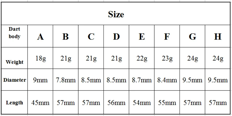 Dart Boby Weight:20g,21g,22g,24g,26g
