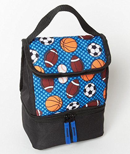 10" Insulated Lunch Bag with Cushion Handle,and Bottom Food Compartment Pvc-free! (Blue sports design)