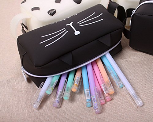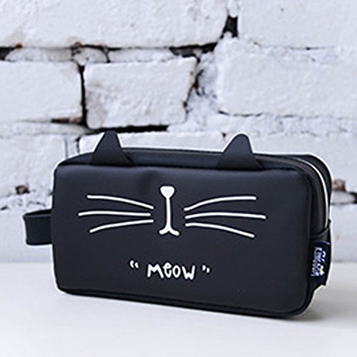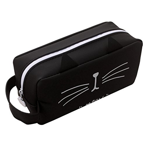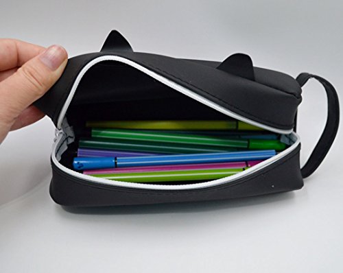 Silicone Pencil Pouch Box Cat Zipper Pens Pencil Case Organizer Bag Black