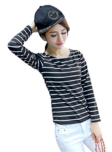 -. Title : (ツー ステップス ビハインド) Two Steps Behind レディース ボーダー 長袖 Tシャツ (L, ブラック)