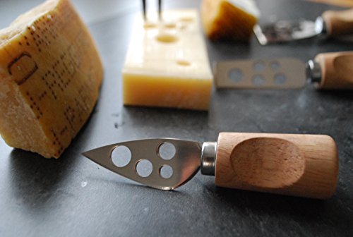 원본상품명: スイスチ?ズ風プレミアムチ?ズナイフ4点セット:ステンレススチ?ル製ブレ?ドと天然ラバ?ウッド製親指ホルダ?付きハンドル スタイリッシュな再生紙ボックス入り
