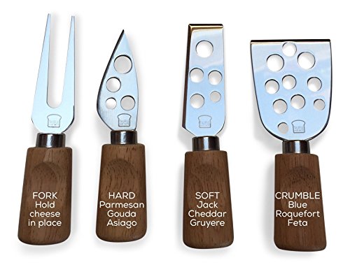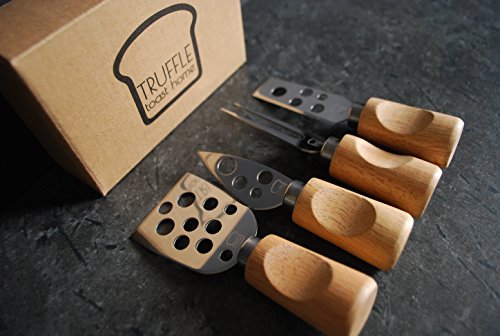 T러플 Toast Home swiss-inspired치즈 부엌칼 나이프 세트 프리미엄4점 세트의 치즈 부엌칼 나이프 :솔리드 스테인레스 스틸 블레이드와 천연 고무 목제 핸들 섬과 홀더에 스타일리시에 재생지 박스