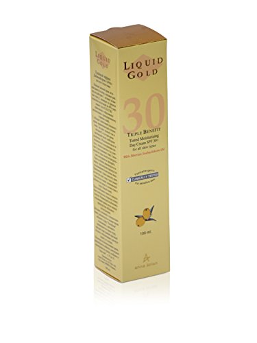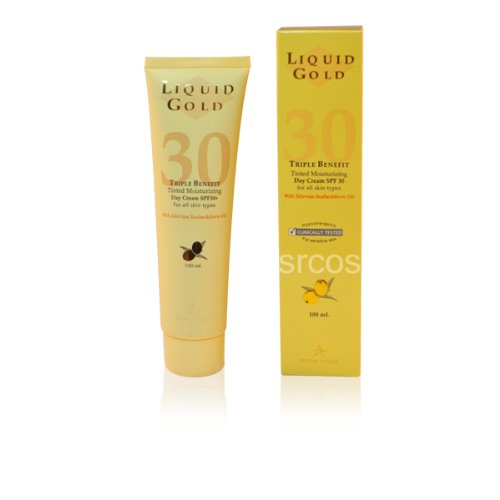 -. Feature : A premium quality moisturizing day cream with optimal broadspectrum UV protection for all skin types. / Ideal for delicate fair skin which is sensitive to the sun. / The moisturizer spreads surP.R.Isingly easily and is rapidly absorbed to leave no oily after feel. / The cream contains natural active ingredients such as Seabuckthorn oil, Plantain and Green Tea extract which protect against free radicals. / Liquid Gold Triple Benefit Day Cream SPF 30 gives maximum protection from the sun's shorter UVB rays which can cause sunburn. It also protects against the longer and deeper penetrating UVA rays to prevent unsightly pigmentation.