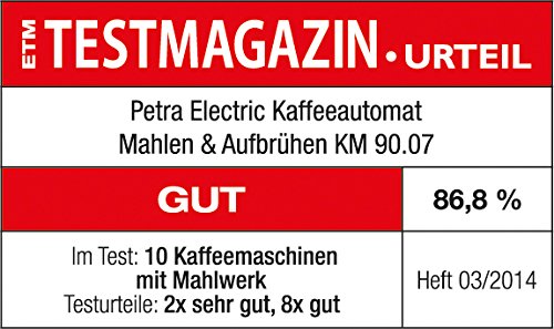 -. Binding : Haushaltswaren -. Brand : Petra -. EAN : 4250778309812 -. Feature : Inhalt: 1,25 L -.Integrierte Kaffeemühle -.Mit Kegelmahlwerk -.Einstellbare Kaffeestärke -.Für Tassen geeignet 10-12 -. Label : Petra Electric -. LegalDisclaimer : Restgarantie vorhanden. -. Manufacturer : Petra Electric -. Model : KM 90.07 -. MPN : KM 90.07 -. NumberOfItems : 1 -. PackageQuantity : 1 -. PartNumber : KM 90.07 -. ProductGroup : Küche & Haushalt -. ProductTypeName : KITCHEN -. Publisher : Petra Electric -. Studio : Petra Electric -. Title : Petra Electric KM 90.07 Kaffeeautomat Mahlen und Aufbrühen