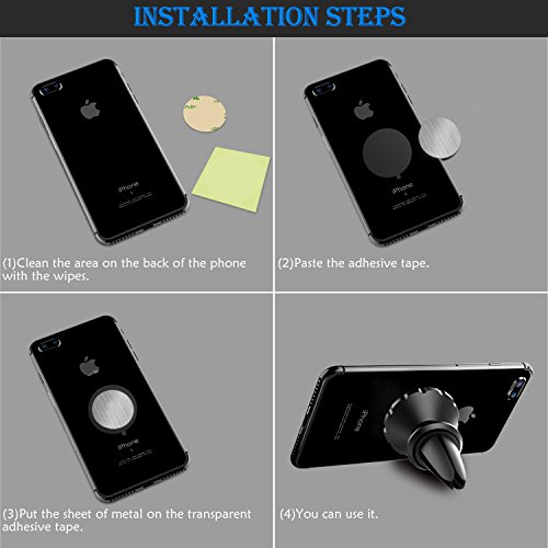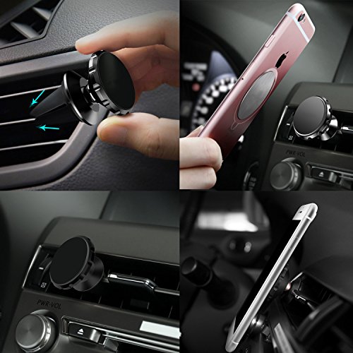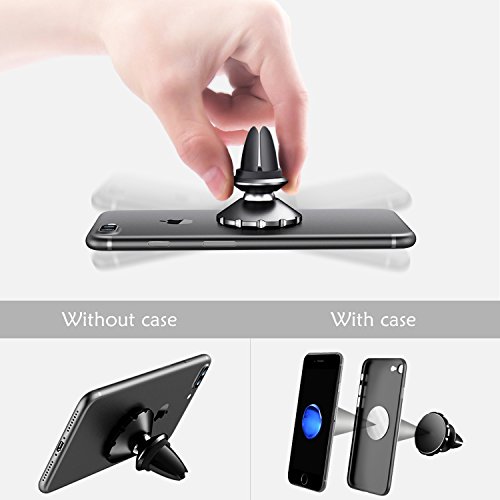 - Compatible With:Magnetic phone mount is designed to fits all device (supports up to 8 ounces),as small as the iPhone,Smartphone,Tablet,GPS etc.This air vent car mount comes with Four powerful magnet to safely and securety mount your phone!