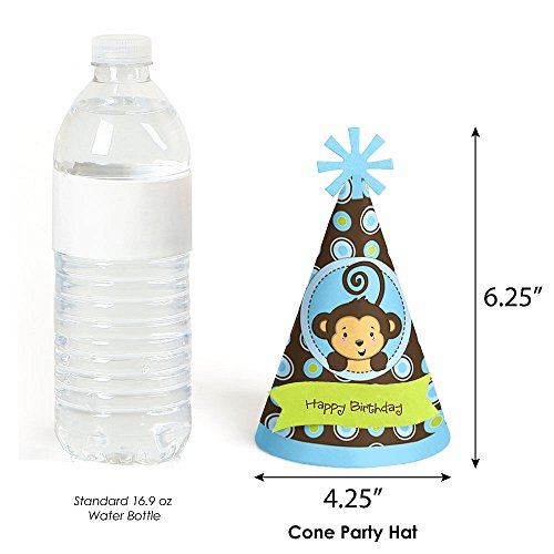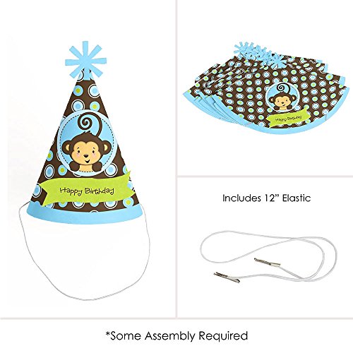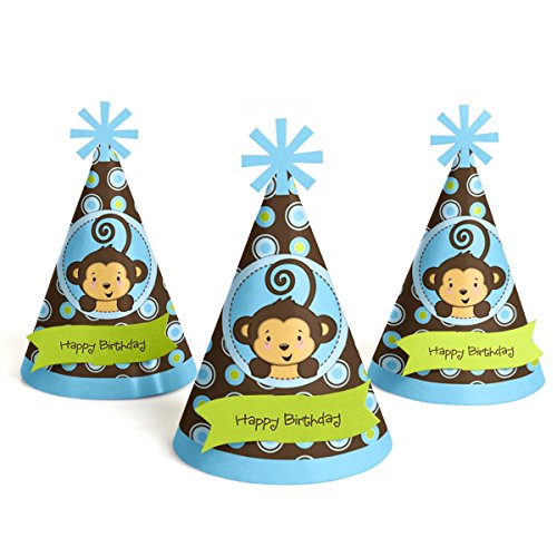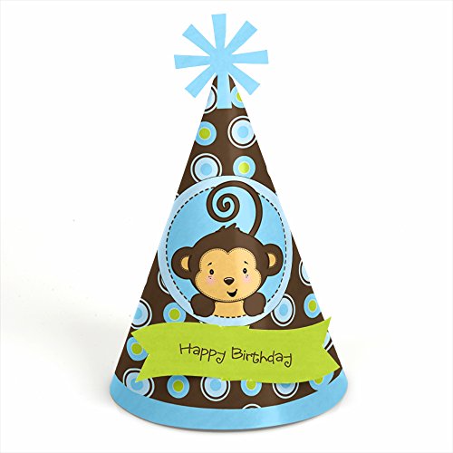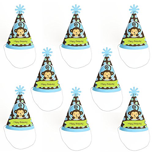 -. Title : Monkey Boy - Cone Happy Birthday Party Hats for Kids and Adults - Set of 8 (Standard Size)