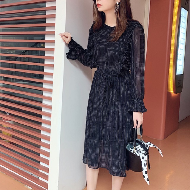 小粒のドット柄で子供っぽくならずに幅広い年齢の方に愛用頂けるシフォンワンピースです◎