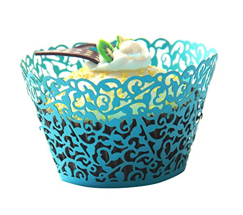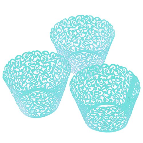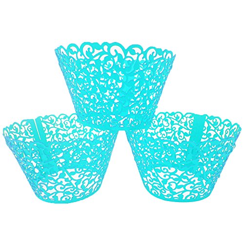 LEFV™ 24pcs Cupcake Wrapper Filigree Little Vine Lace Laser Cut Liner Baking Cup Muffin Case Trays Wraps Wedding Birthday Party Decoration Blue