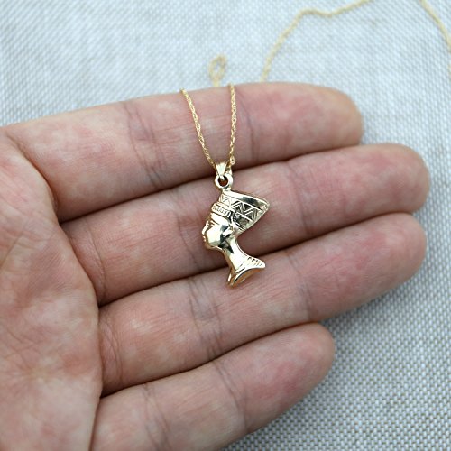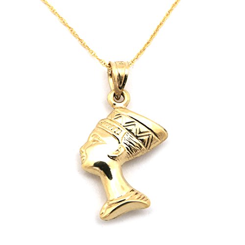 -. Title : 14k Yellow Gold Nefertiti Egyptian Queen Pendant Necklace - 13" 15" 16" 18" 20" 22"