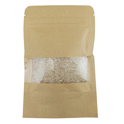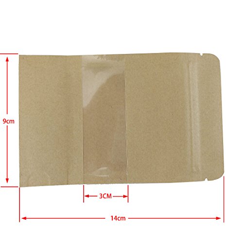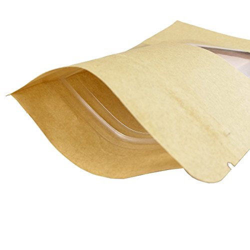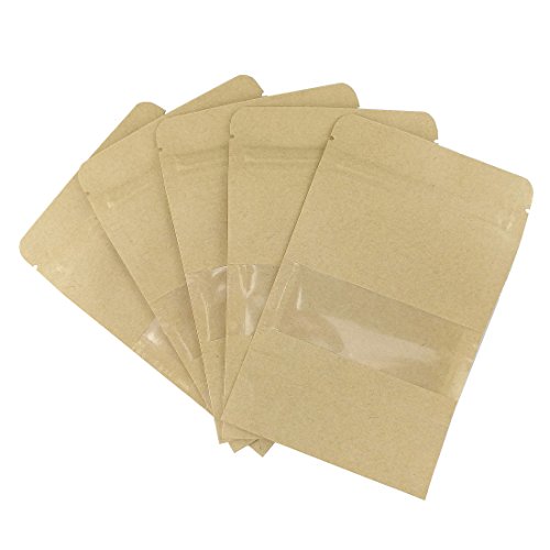 Ailavi Set of 50pcs Kraft Zip Lock Stand Up Food Bags Resealable Pouches with Notch and Matte Window,5.5"3.5"+1.2"