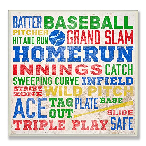 The Kids Room by Stupell Baseball Words Typography Square Wall Plaque