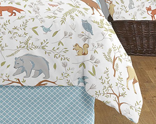 Blue, Grey and White Woodland Deer Fox Bear Animal Toile 3 Piece Girl or Boy Full / Queen Bedding Childrens Bedding Set
