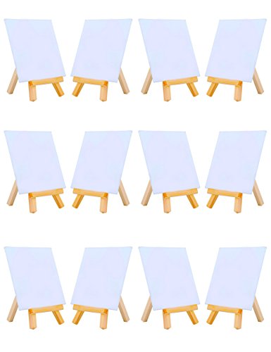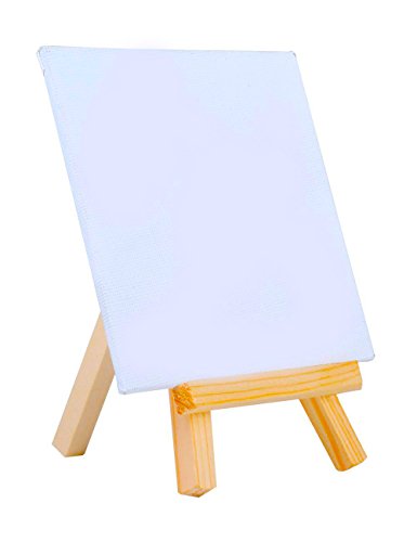 MEEDEN 4 by 4 Inch Mini Canvas Panels Combined with 3 by 5 Inch Tiny Wood Easels Set for Paintings Craft Small Acrylics Oil Projects, Pack of 12