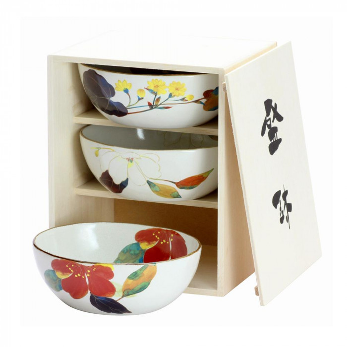 和を感じるレトロなデザインの三つ組鉢。大切な方へのギフトにも最適です。 製造国:日本(木箱:中国) 素材・材質:鉢:磁器木箱:天然木 商品サイズ:鉢:16×14×H5.7cm 仕様:食器洗浄機・電子レンジ使用可木箱入り セット内容:鉢×3 ※サプライヤー直送品 ご注文後3~4営業日後の出荷となります【商品名】花かいろう 三つ組鉢 02509