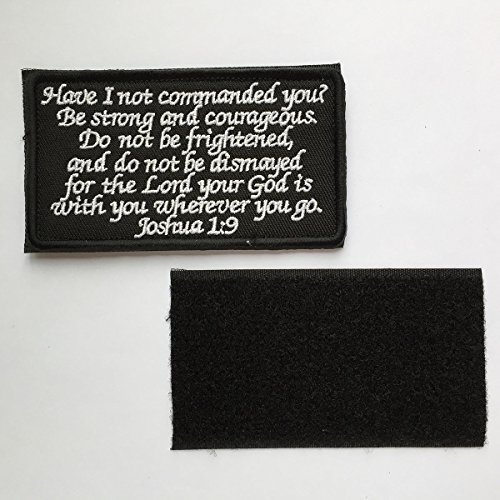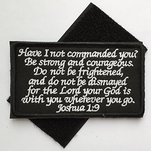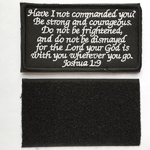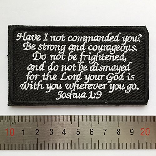 - Joshua 1:9 Tactical Morale Desert Badge Embroidery Hook & Loop Emblem Patch 3.93"*2.16" - Black & White