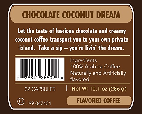 Crazy Cups Flavored Coffee for the Keurig K Cups Coffee 2.0 Brewers, Chocolate Coconut Dream, 22 Count