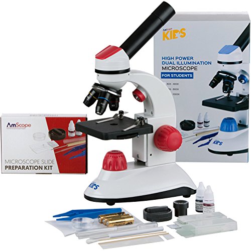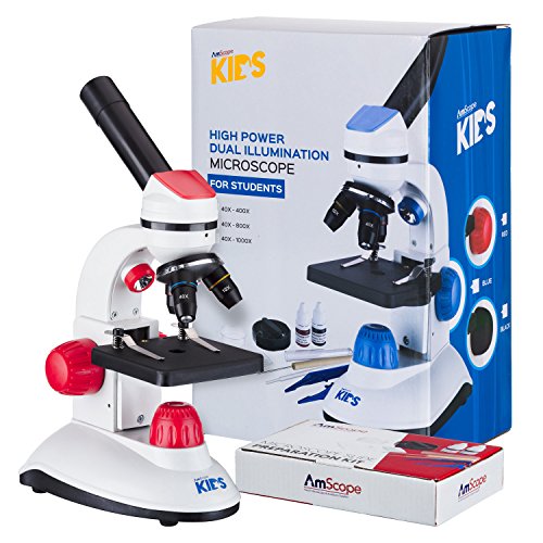 AMSCOPE-KIDS M50C-B14 40X-1000X Dual Illumination Student Microscope Gift Package Awarded 2016 Top 3 Ranking Best Kids Microscope (Blue)