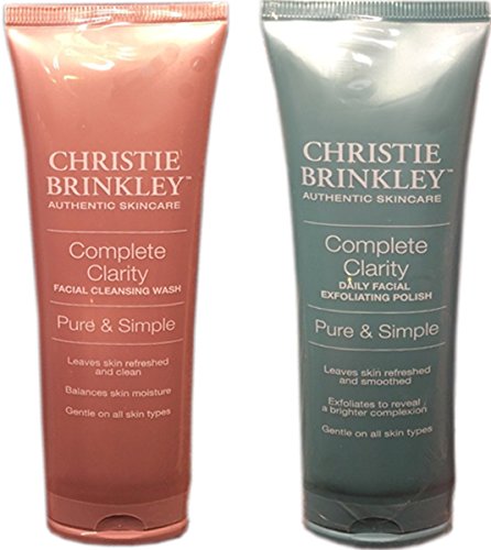 -. Feature : Two Piece Set Includes: Christie Brinkley Authentic Skincare Complete Clarity Daily Facial Exfoliating Polish, 3.0 fl oz/88mL, and Complete Clarity Facial Cleansing Wash, 3.0 fl. oz/88mL. / Complete Clarity Daily Facial Exfoliating Polish-Gentle daily exfoliating polish removes dead skin cells allowing your skin to be more receptive to other topical products. / Complete Clarity Facial Cleansing Wash-Light foaming gel cleanser gentle enough for daily use leaves your skin clean and feeling fresh. / Sealed, full-size tubes, 3.0 fl.oz/88mL. 6.0 fl. oz. total.