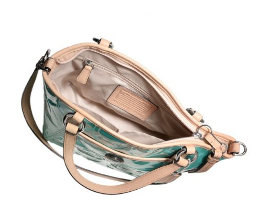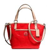 COACH F25190 SIGNATURE EMBOSSED PATENT SMALL POCKET TOTE CROSSBODY (VERMILLION TAN)