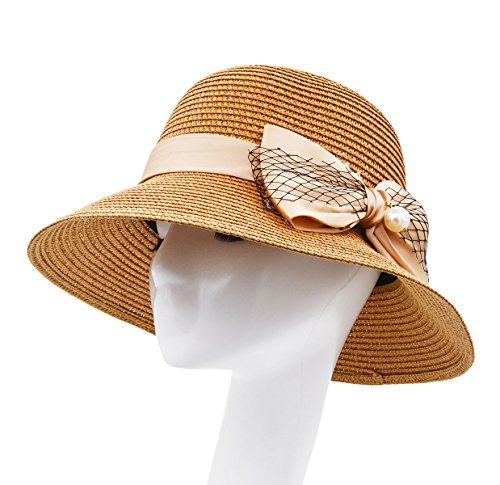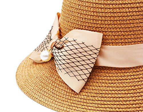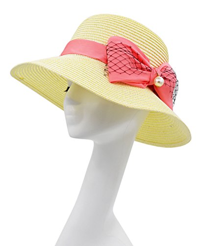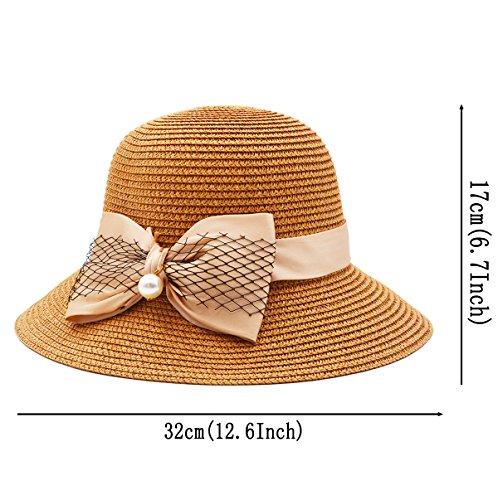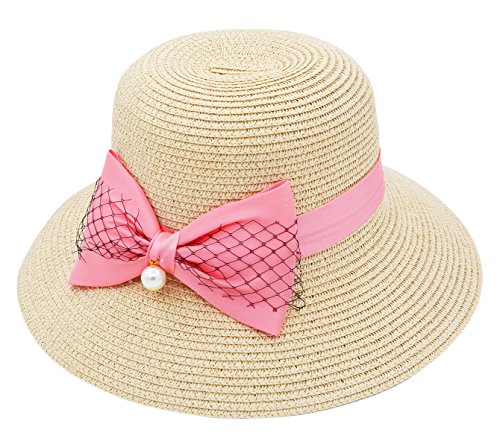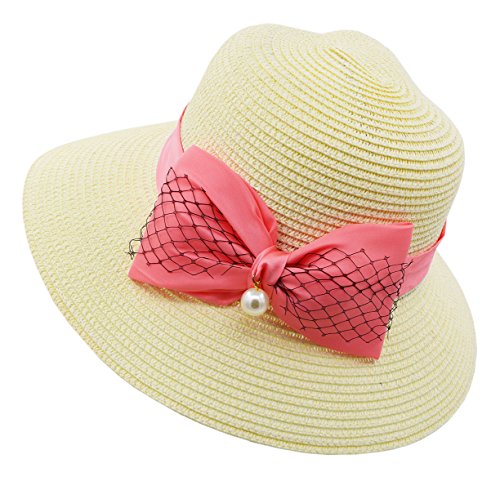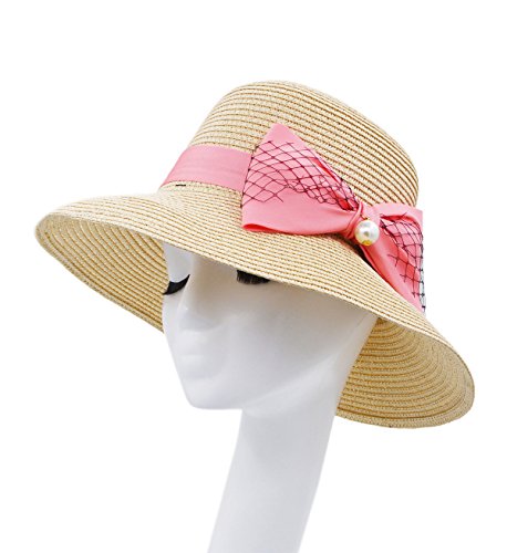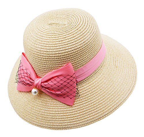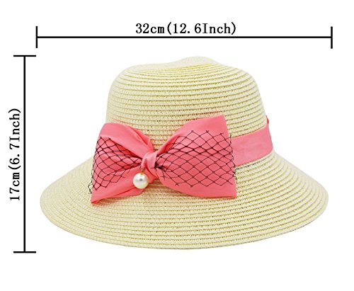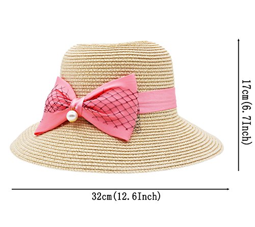 Vegali Women Bowknot Wide Brim Summer Beach Sun Straw Hats