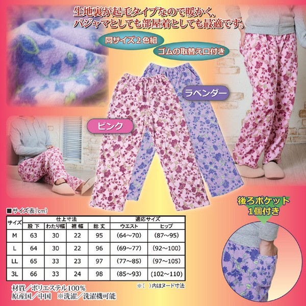 大人気の「パジャマの下」に冬バージョンが新登場しました。生地は裏起毛タイプでとても温かく、冷えから足元を守ってくれます。2色セットなので、洗い替えにも便利で、パジャマとしてだけでなく部屋着用としても。腰部分はゴム入りで、ゴムの取り替え口も付いてます。
