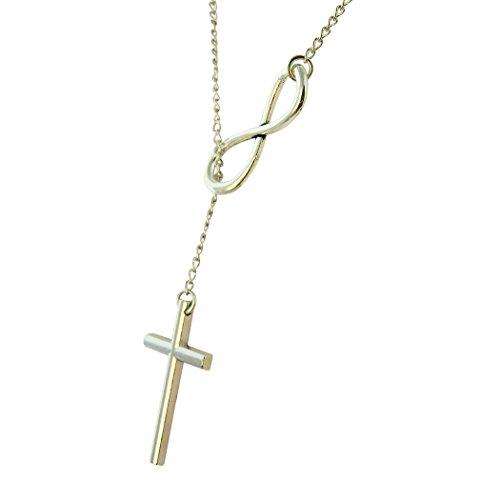 - Title : Rosemarie Collections Women's Cross and Infinity Lariat Necklace Silver Tone