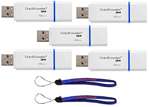 Kingston Digital 16GB (Five Pack) 16 GB Data Traveler 3.0 USB High Speed Flash Jump Pen Drive, Blue (DTIG4/16GBET) WIth (2) Everything But Stromboli Lanyards