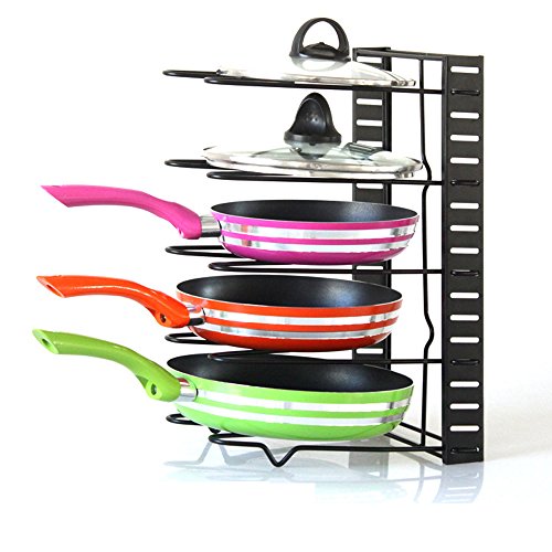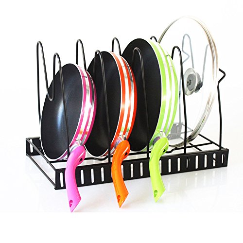 The width between the rack can be adjusted, you can organize storage of different sizes of pot and lid, so that your kitchen looks more clean and orderly