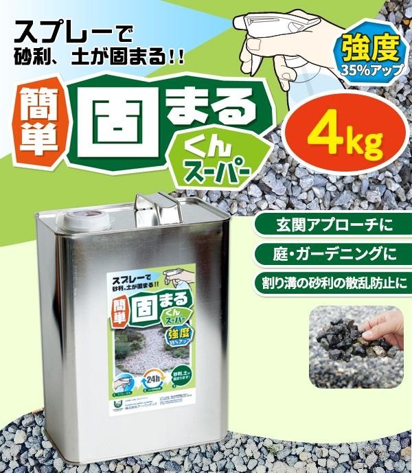固まるくんスーパーをシュシュッとスプレーするだけで、ガレージや庭の砕石・土の表面を簡単に固めることができます。楽しい庭作りやエクステリアの空間作りに。お手持ちのスプレーボトルに入れてご使用下さい。 |