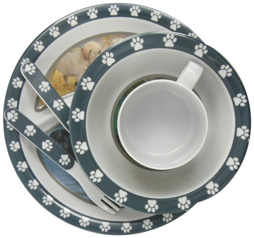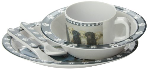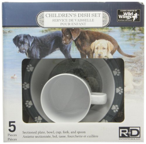 -. Feature : Wild Wings Children's 5-Piece Melamine Tableware Set Featuring Labs / Wild wings lab art by Jim killen / Dishwasher safe top shelf recommended / 3 Section 8-Inch plate, 5-Inch bowl, 6-ounce cup, fork and spoon