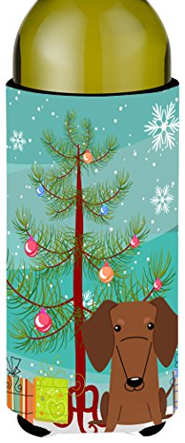 Caroline's Treasures BB4255LITERK Merry Christmas Tree Dachshund Red Brown Wine Bottle Beverage Insulator Hugger, 750ml, Multicolor